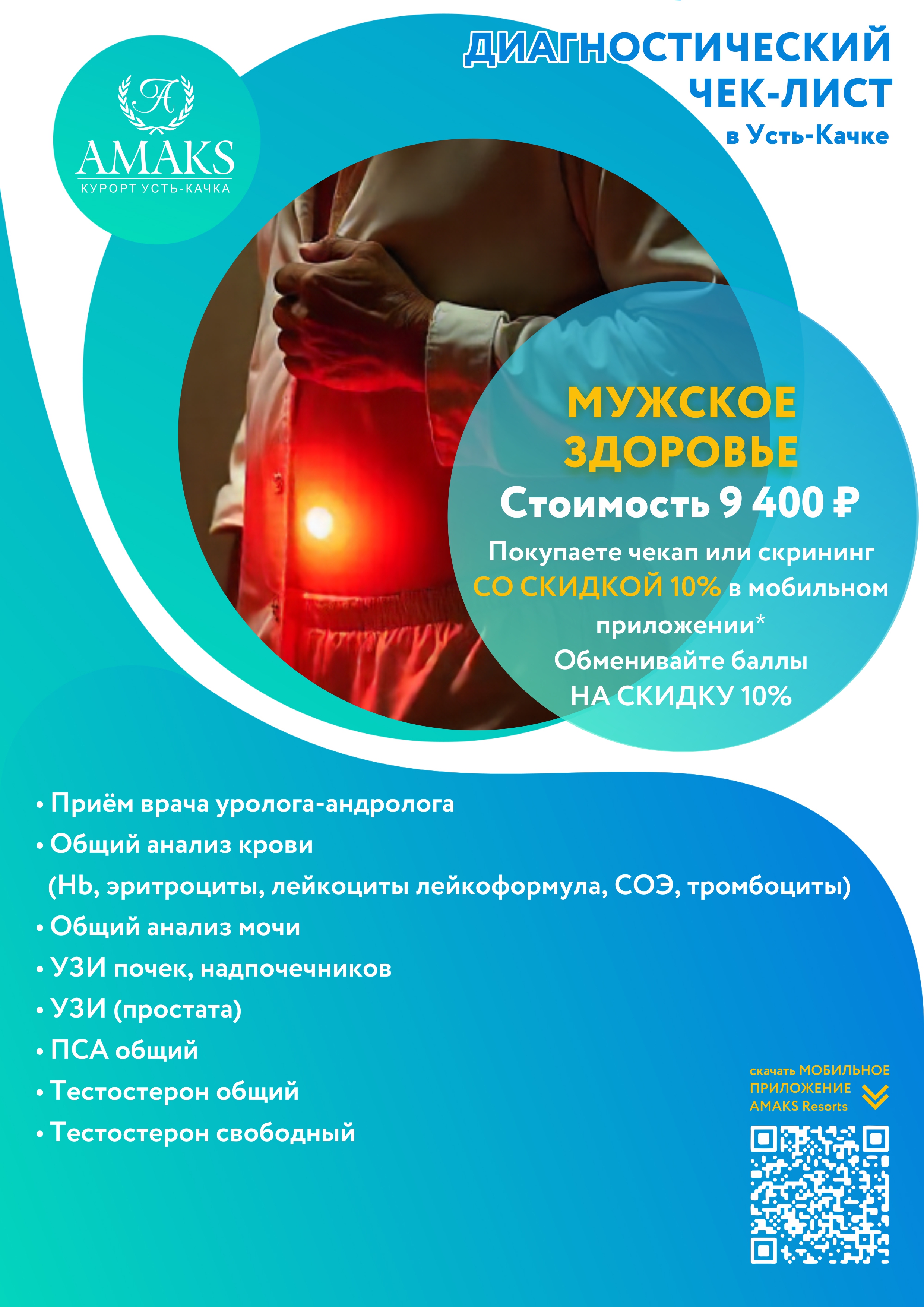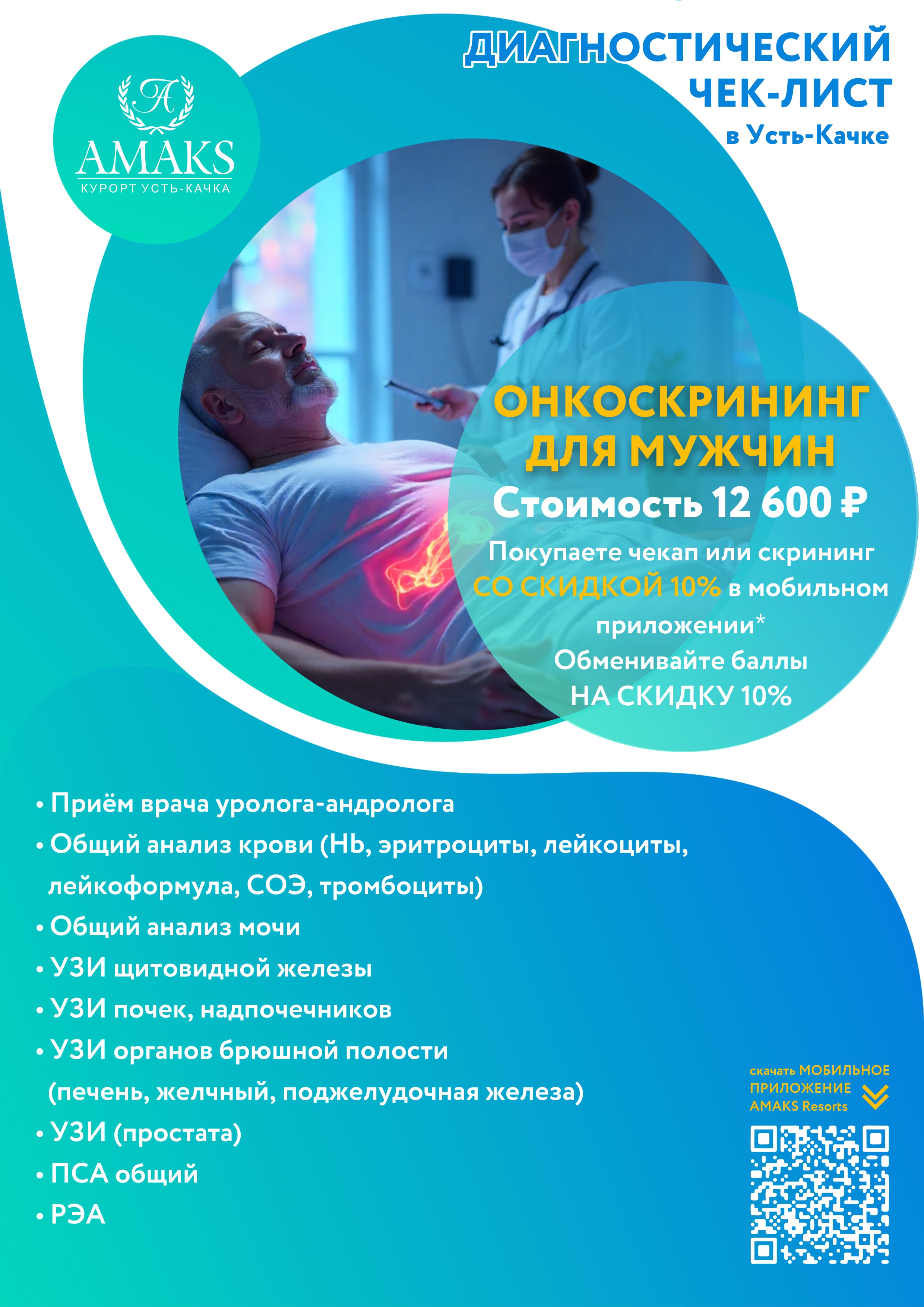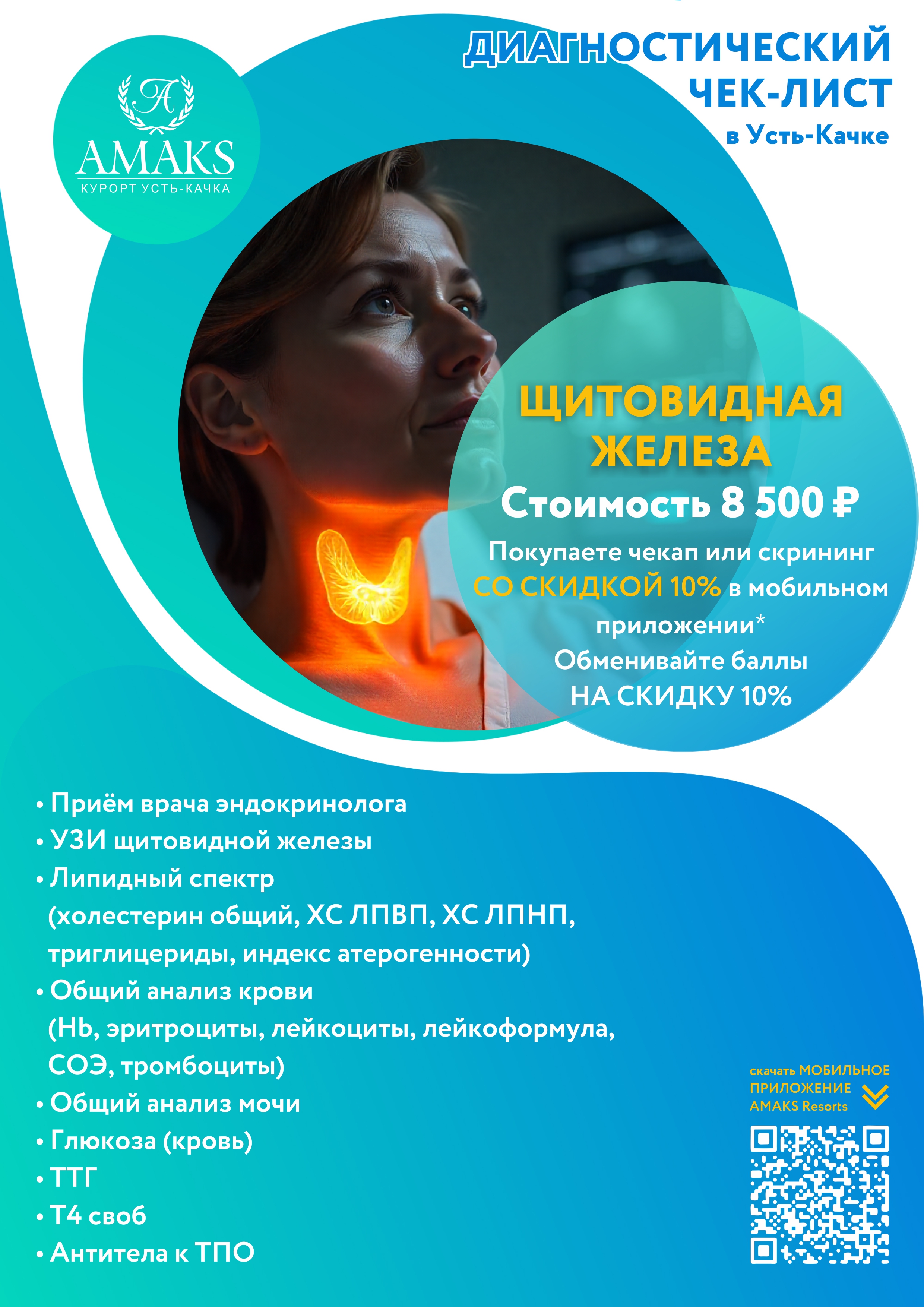 There is no need to stand in queues, adjust your work schedule and ask for a doctor's appointment, you can come to AMAKS Ust-Kachka Resort and get examined as soon as possible.
